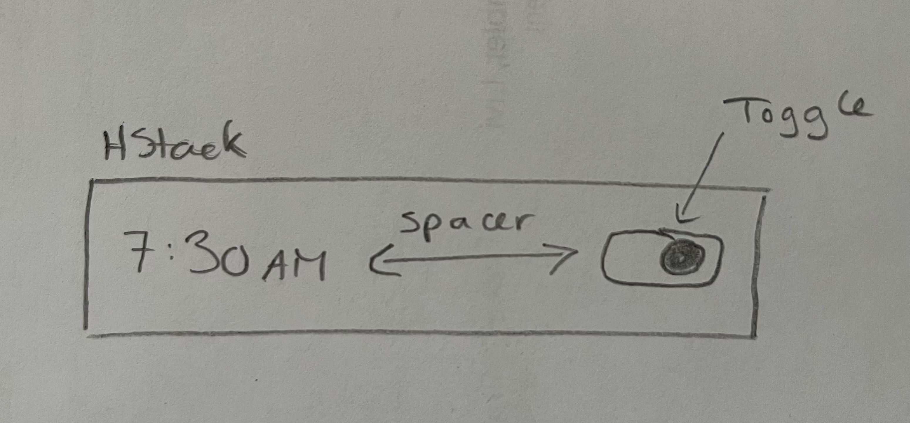 You might want to start by adding an HStack, with text at left, a Spacer, and a toggle at right, something like this:
