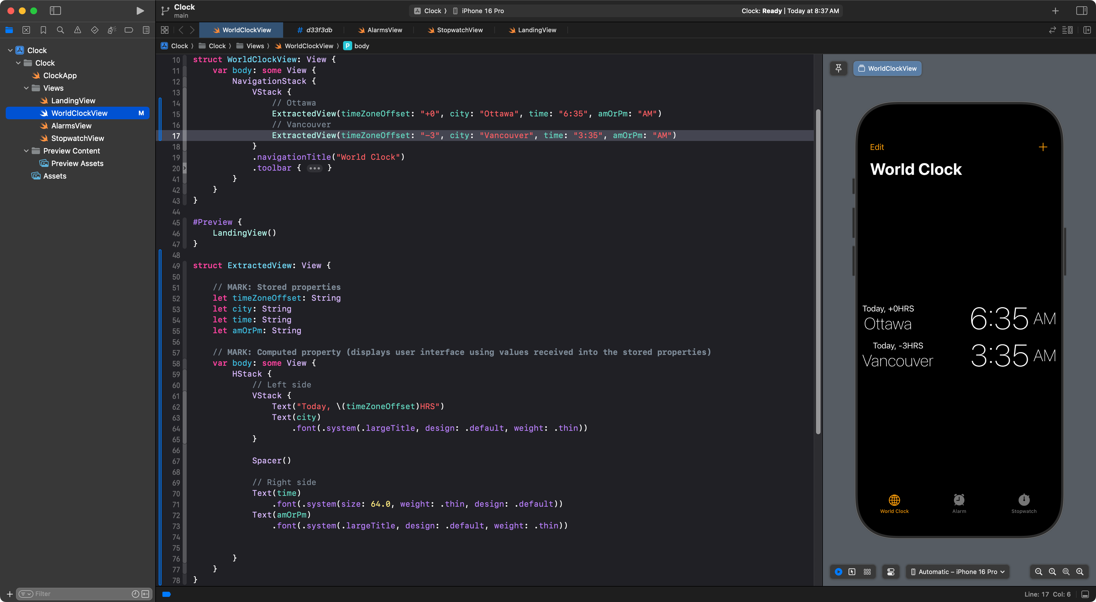 Which just helps to keep the contents of the WorldClockView file from getting too long: