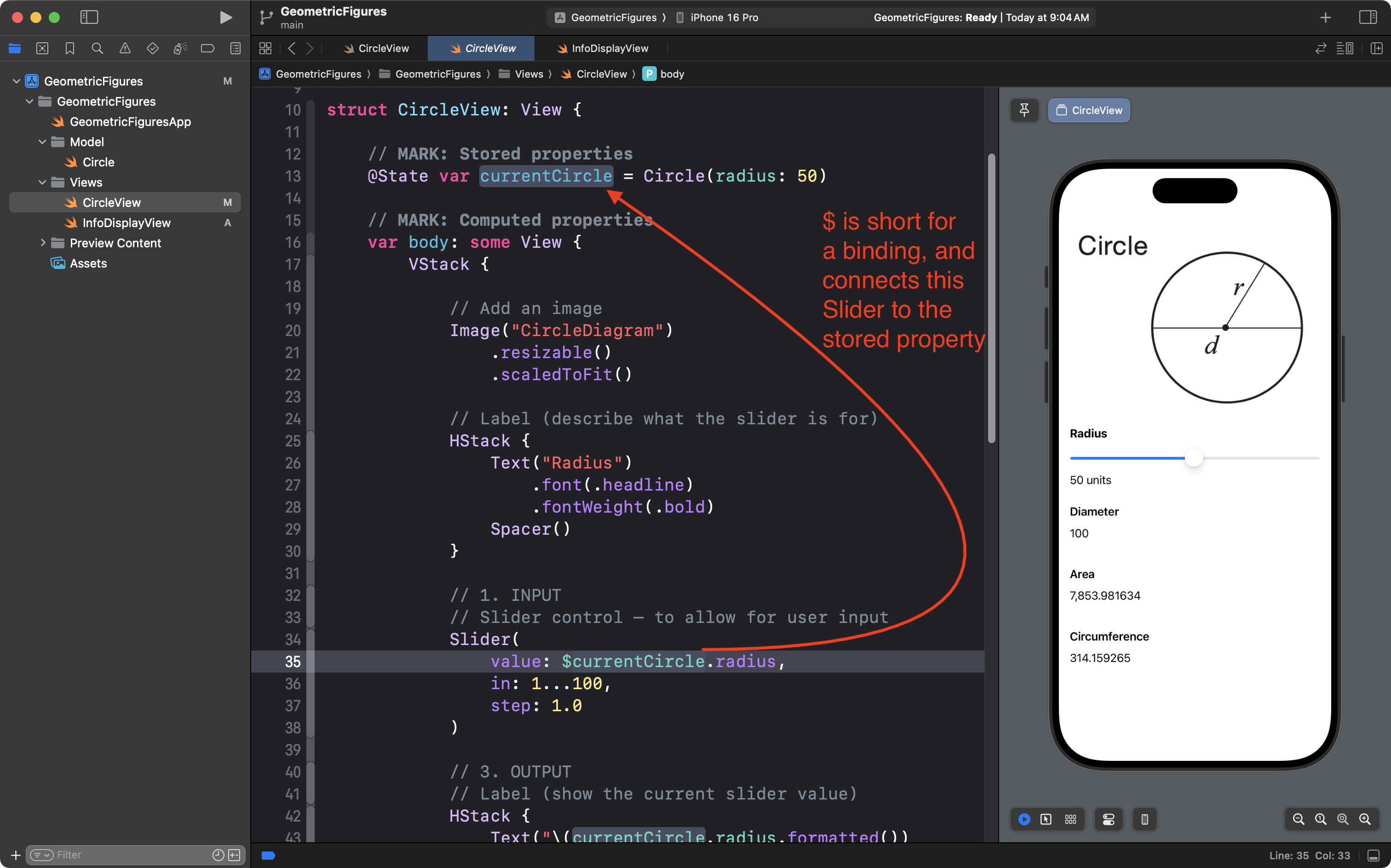 What is a binding? Recall, you used a binding with a Slider view back when you built your GeometricFigures app: