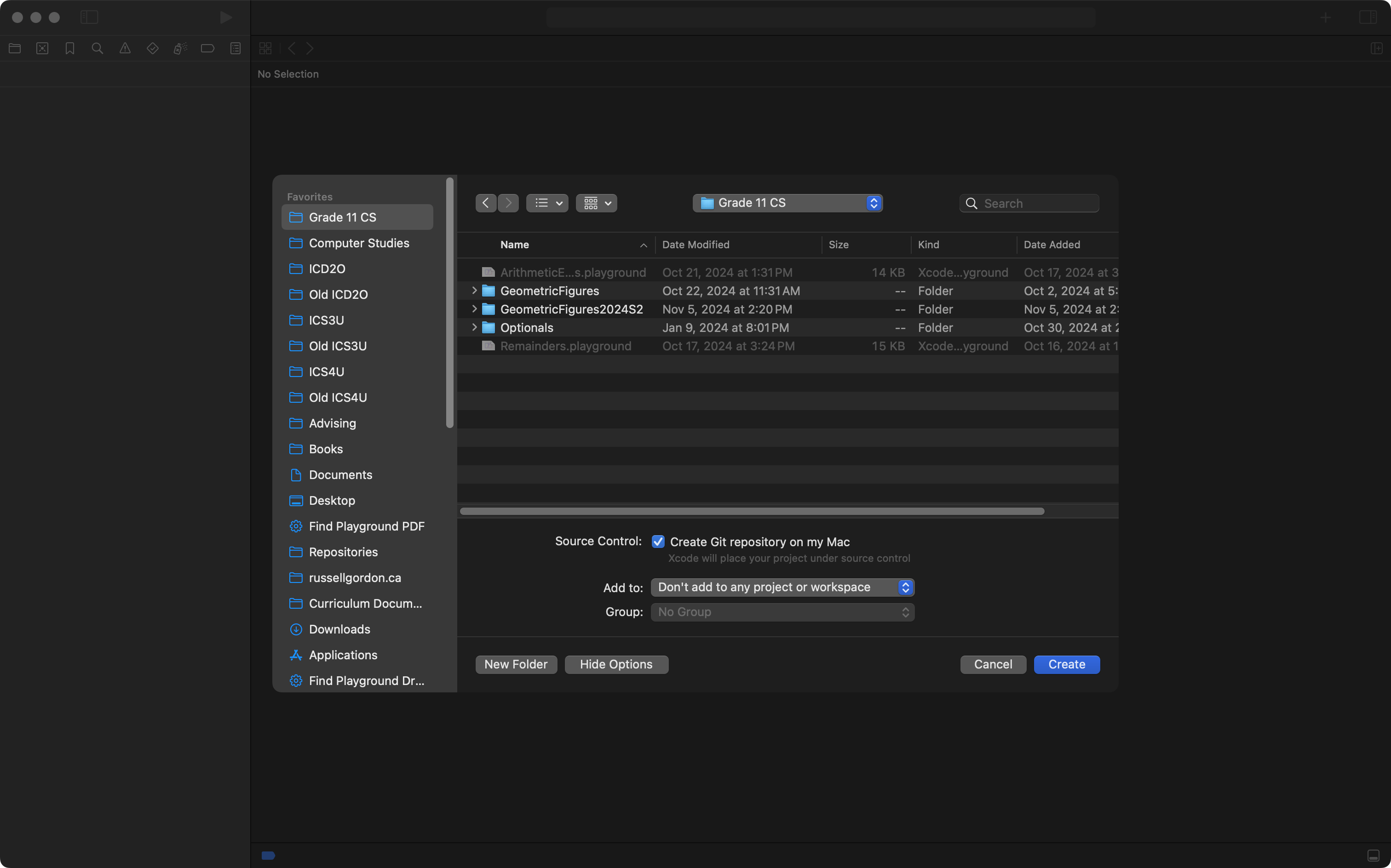 Be sure that Source Control is enabled and save your work in an appropriate location on your computer – such as your Grade 11 Computer Science folder: