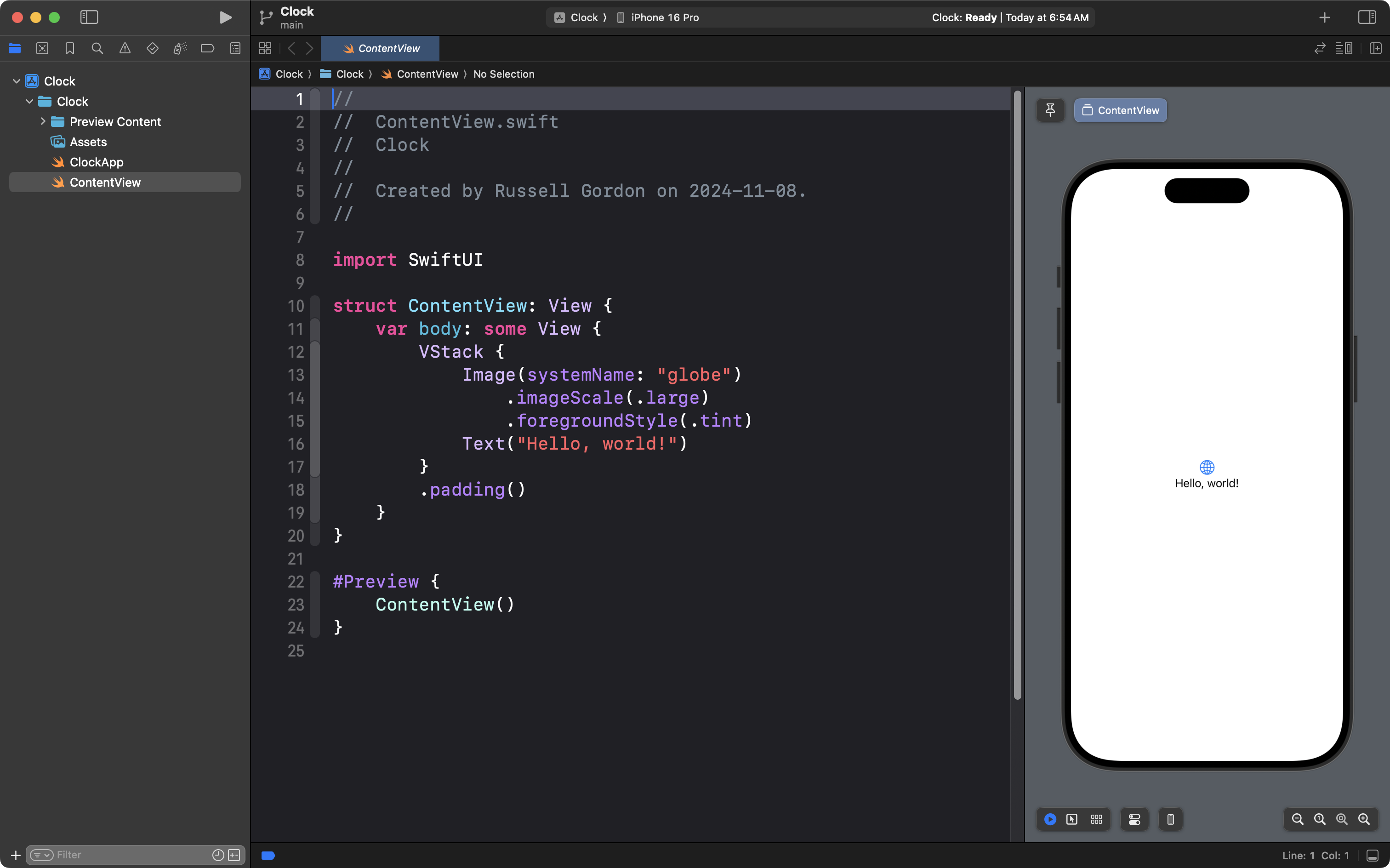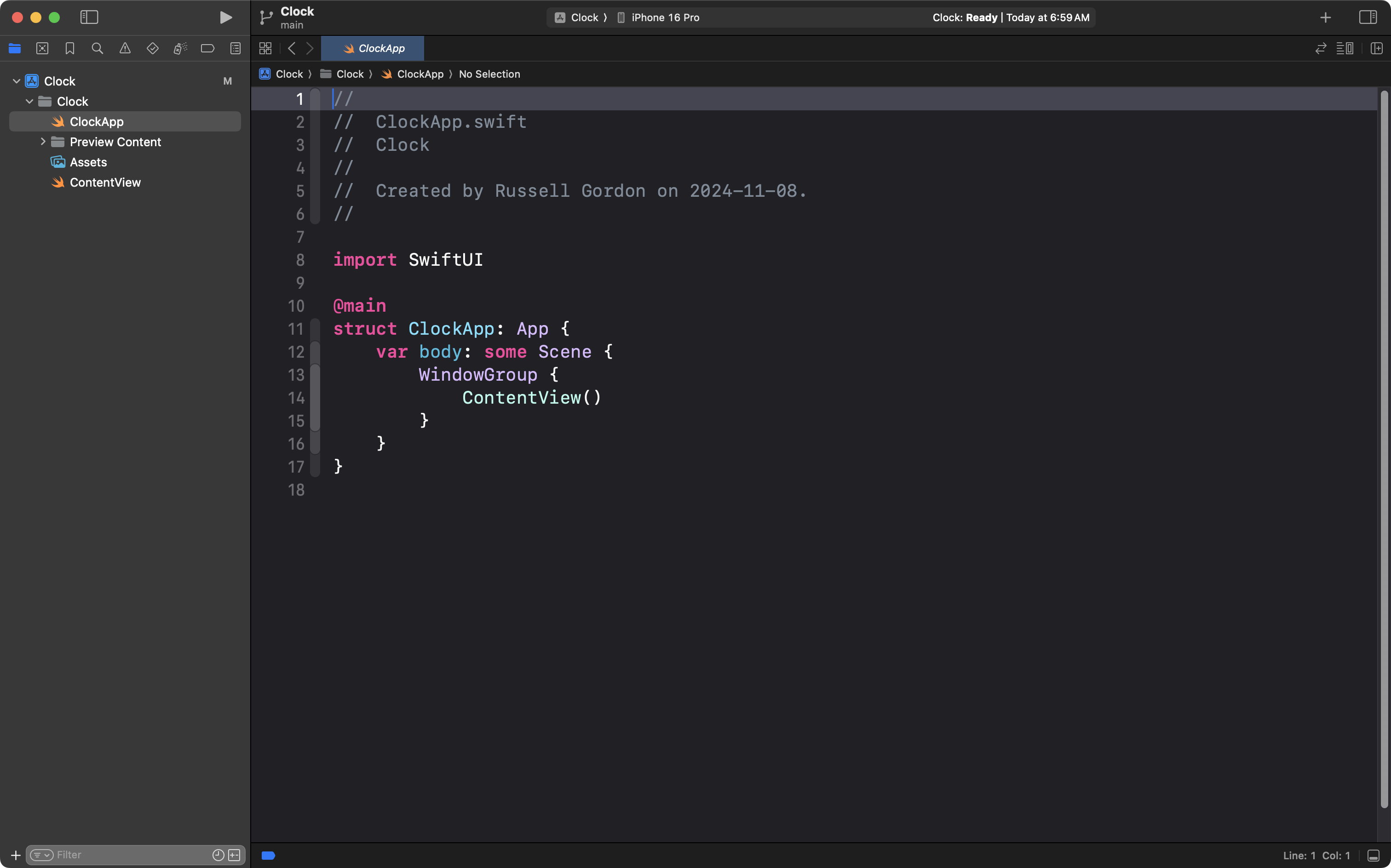 Drag and drop the ClockApp file, so it is between the Clock folder and the PreviewContent folder: