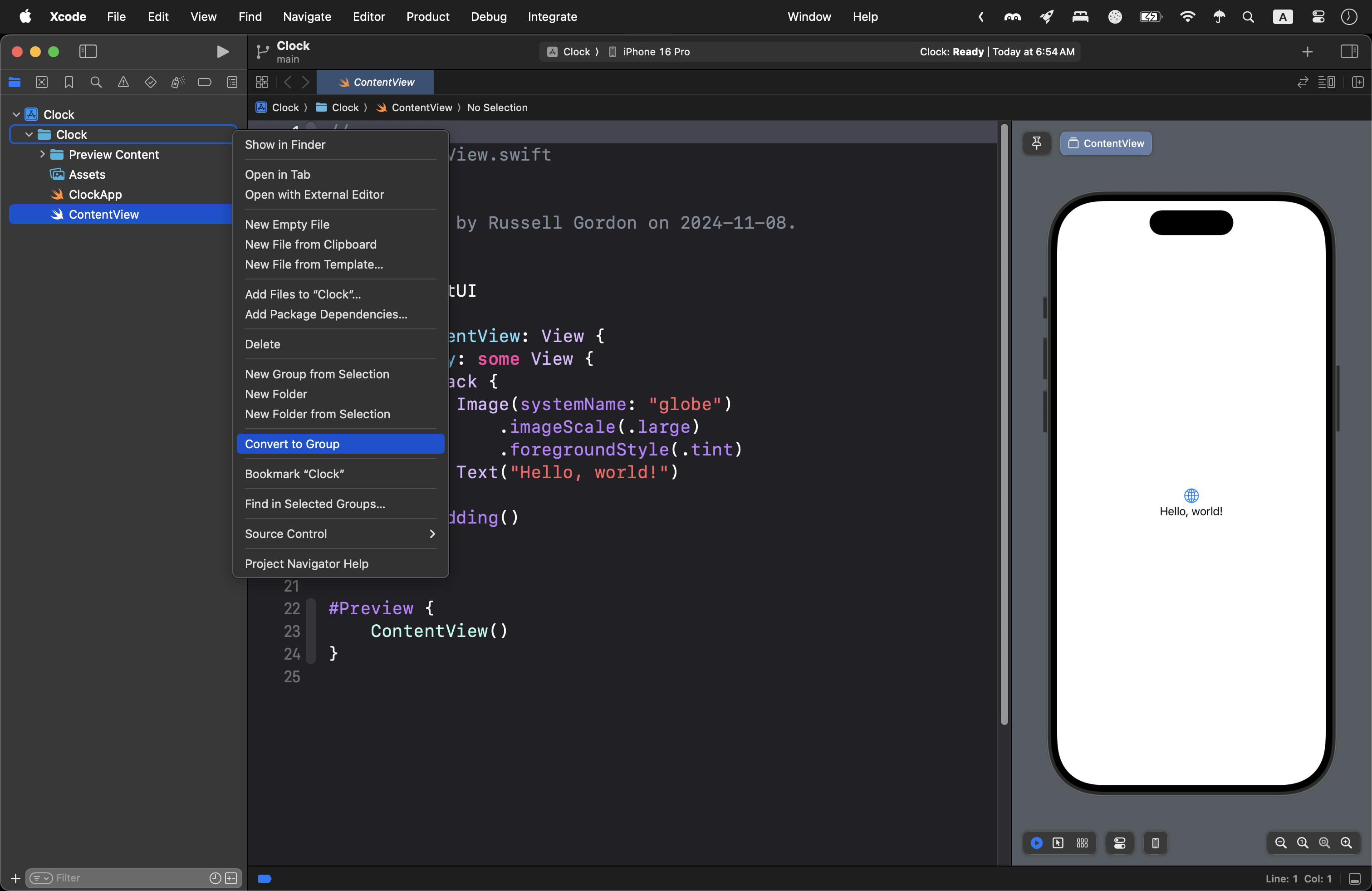 Two-finger tap or right-click on the Clock folder and choose Convert to Group: