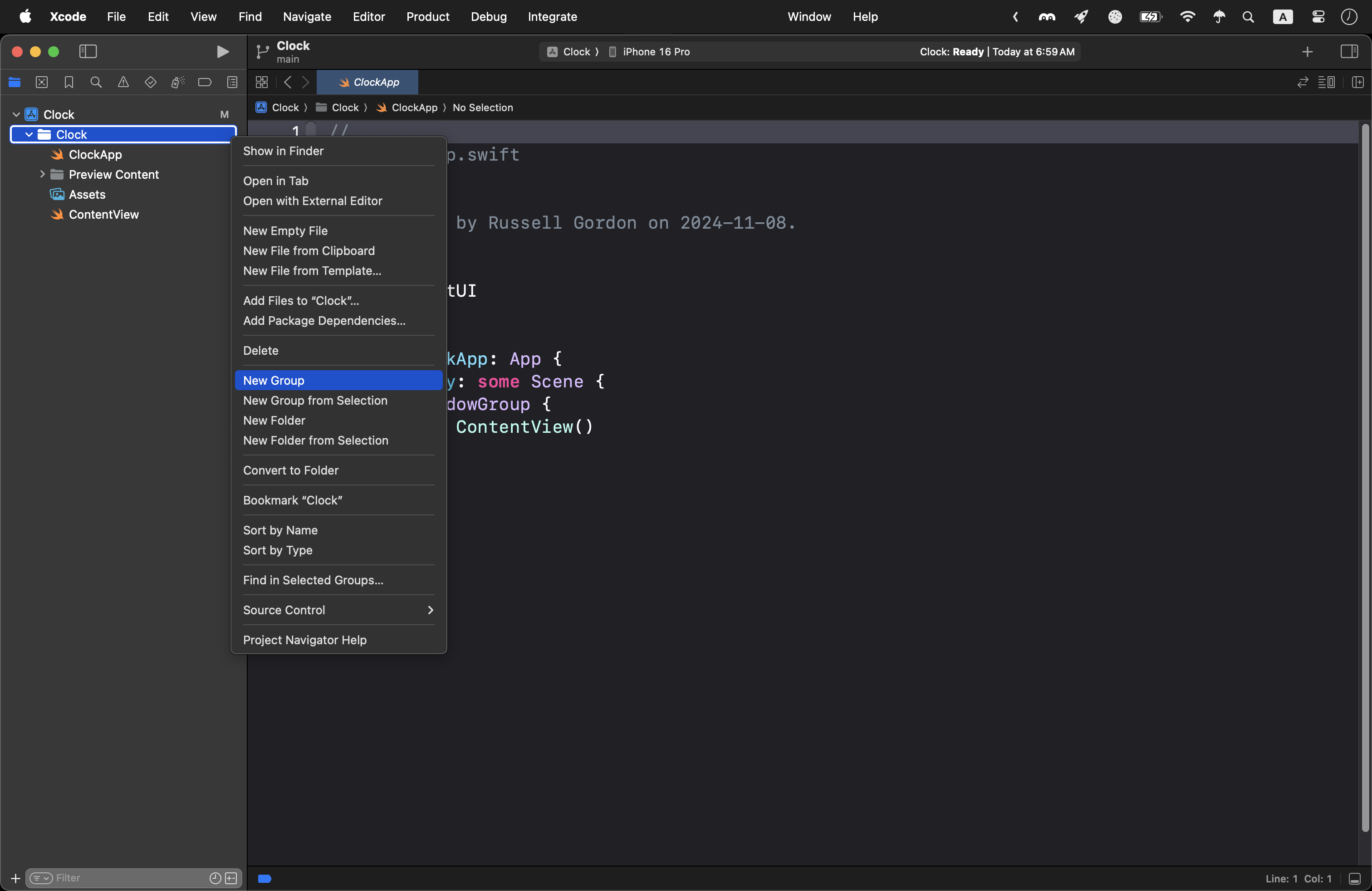 Two-finger tap or right-click on the Clock folder and make a new group: