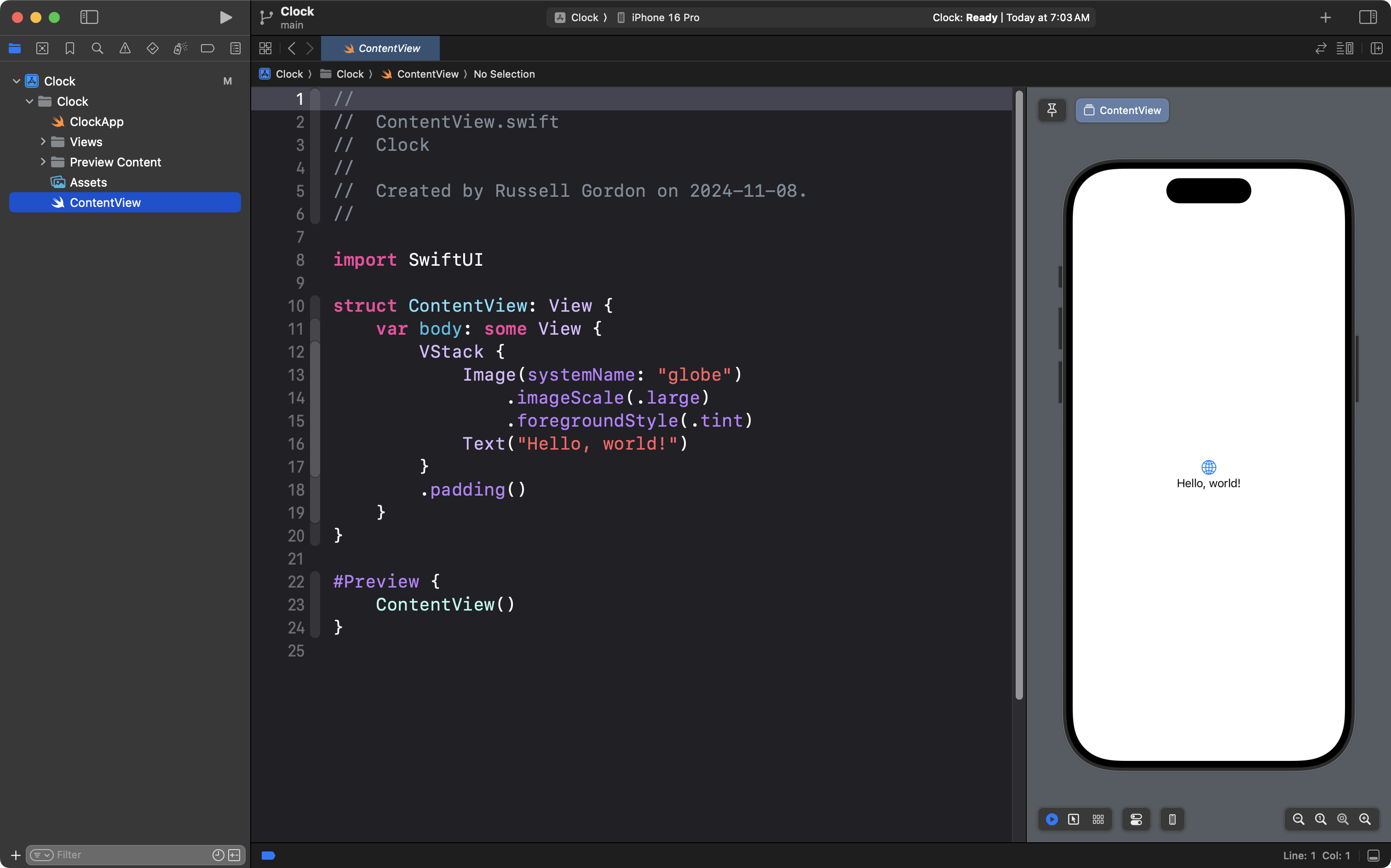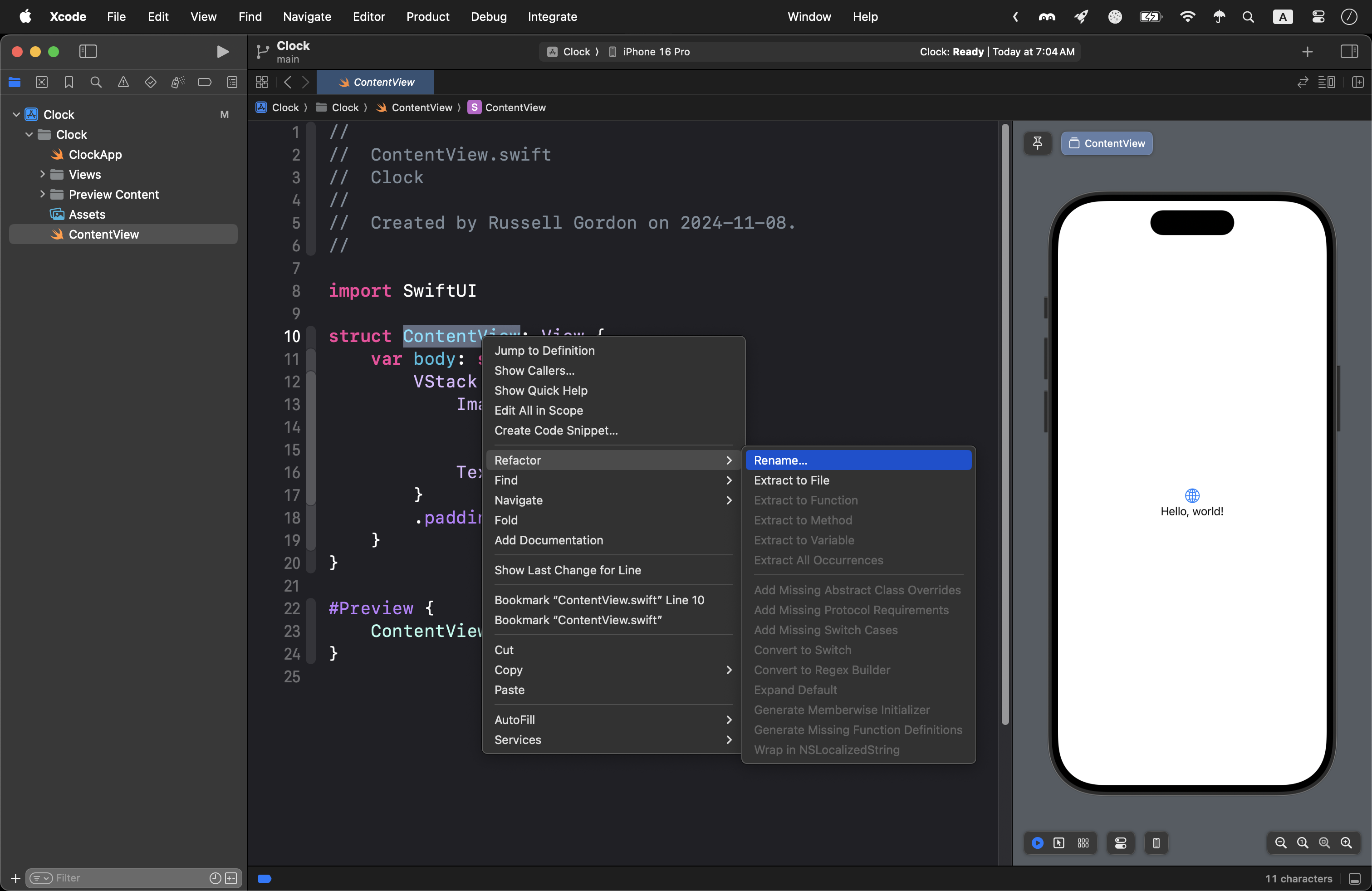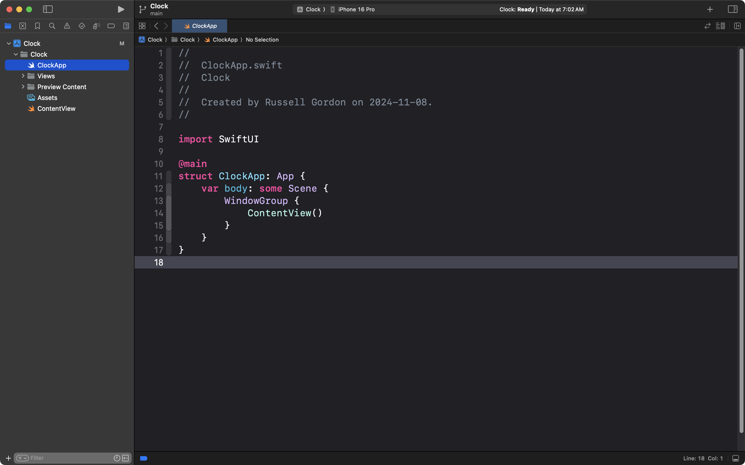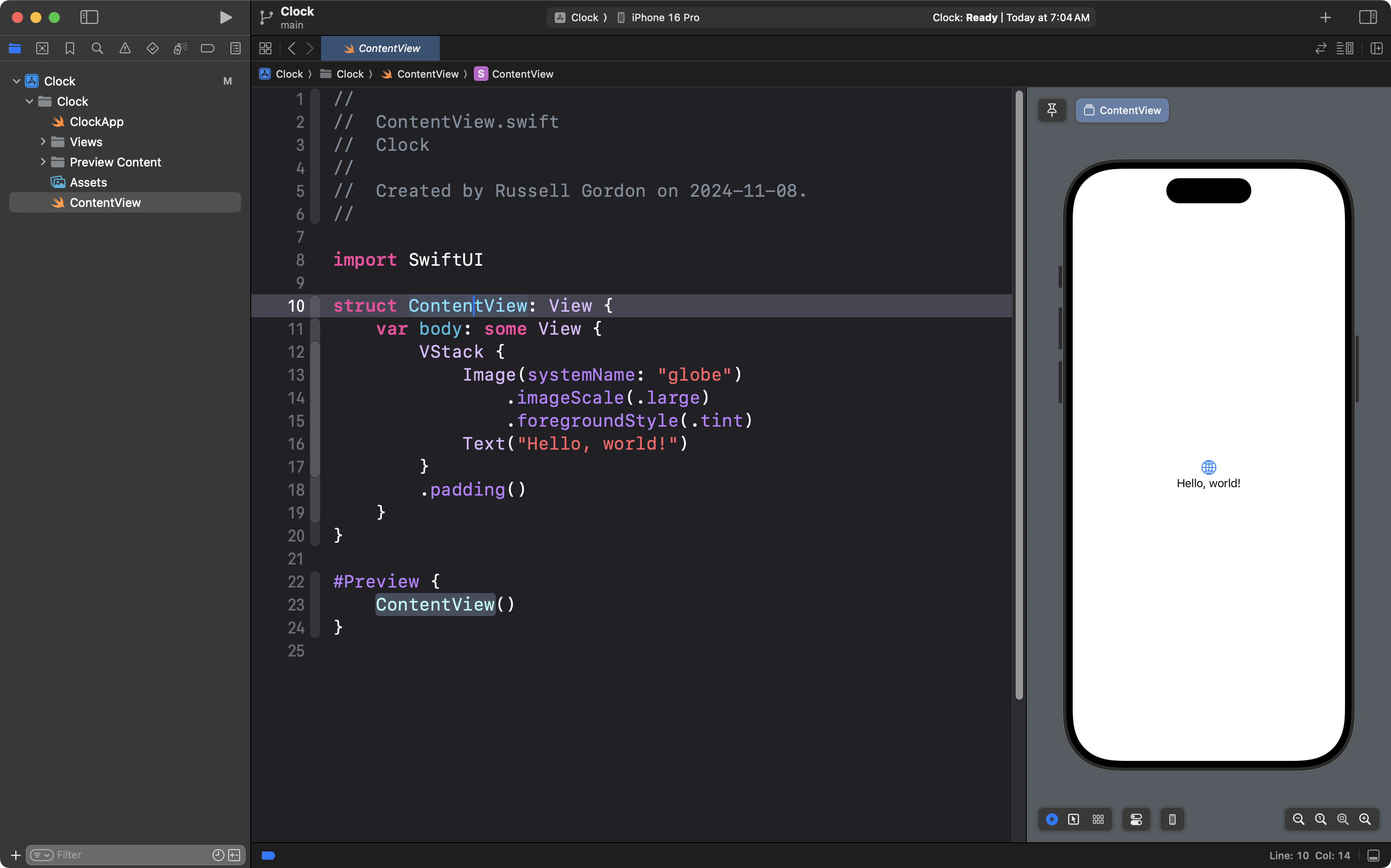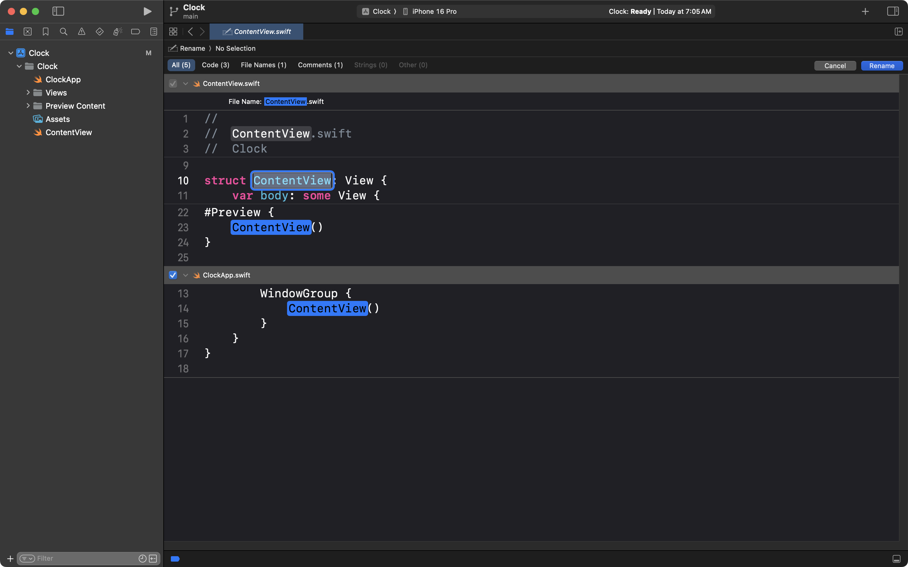 Drag and drop the ClockApp file again, so it is between the Clock folder and the Views folder:
