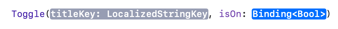 When you add a Toggle view, it expects a binding for it’s second argument, to control whether the toggle switch is “on” or “off”: