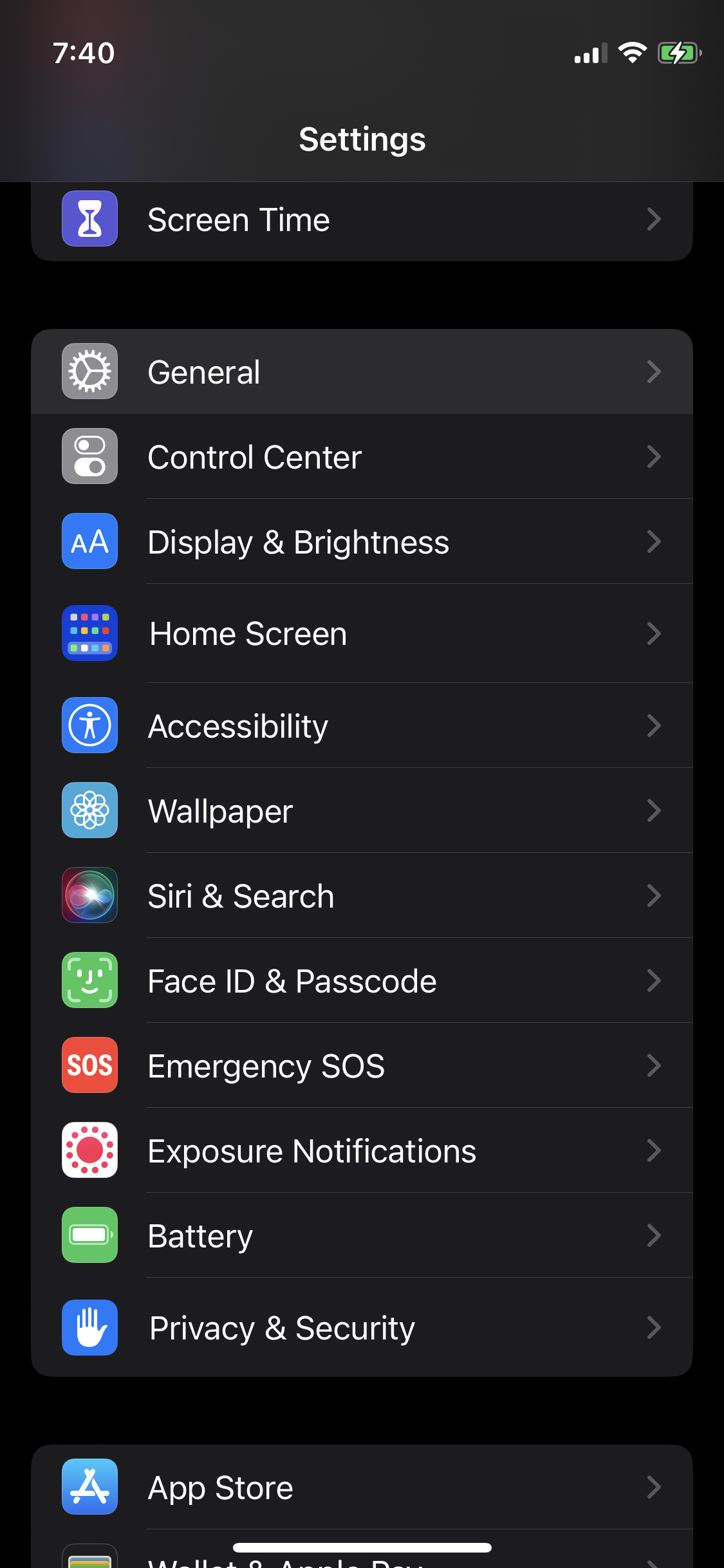 Open Settings again, and choose General: